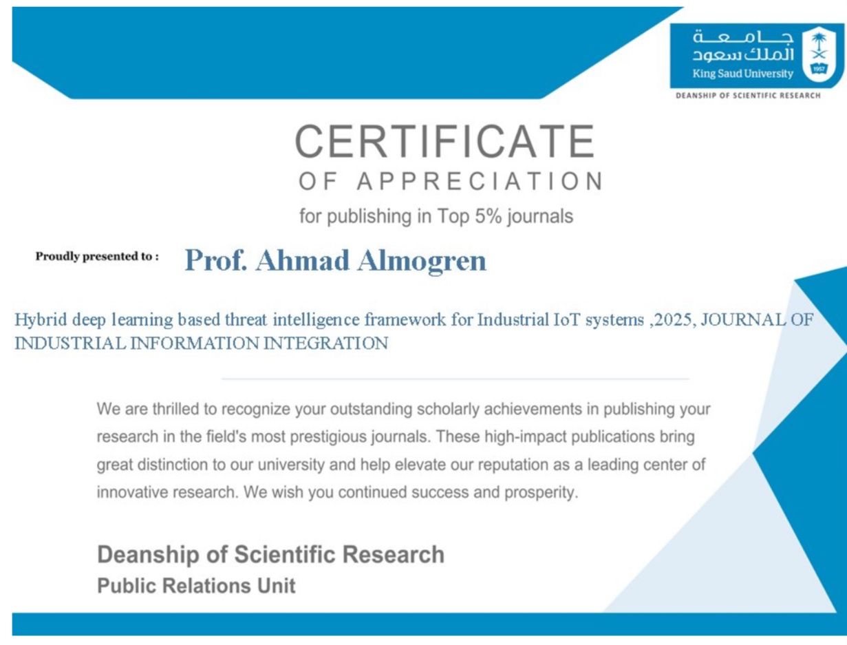 ![]() | Prof. Ahmad Al-Mogren Recognized for Publishing in Top 5% JournalsDate: Sep 3, 2025 | Awarded by: Deanship of Scientific Research, KSU |
